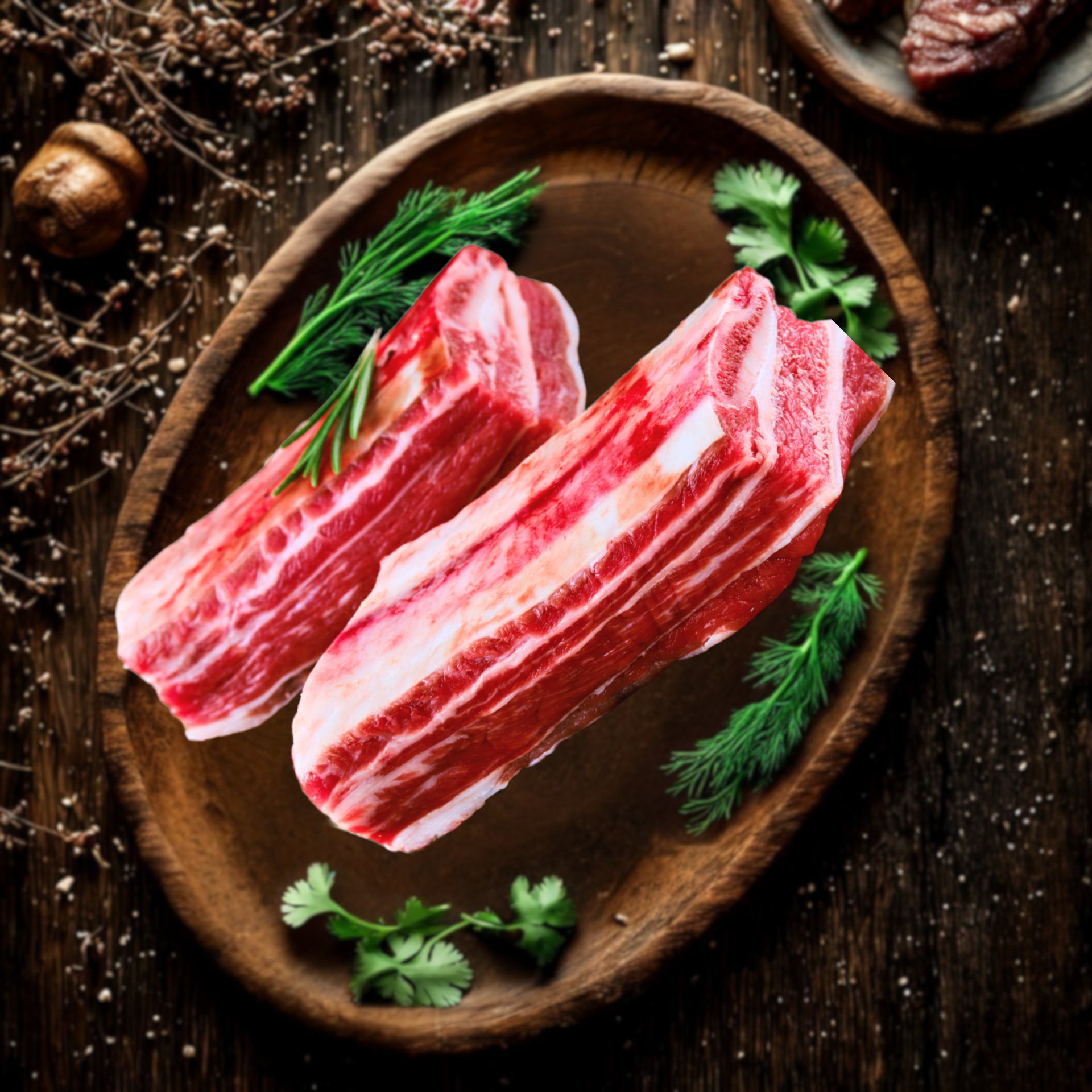 Ribeye is the crown jewel of American Wagyu beef, prized for its rich marbling and buttery texture. The cut comes from the rib section, providing a balance of fat and meat that delivers a luxurious eating experience.
